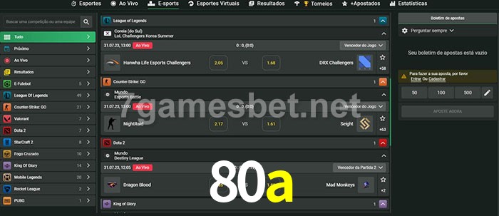 A aposta 80a oferece aos jogadores a experiência mais conveniente de apostas em eSports!